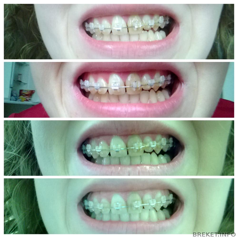 для меня это огроменный прогресс! Клык стал ниже, да и 4-ка с 6-кой опустились (5-ка удалена). Как я рада! Если заметите другие изменения, сообщите, пожалуйста. А то все мое внимание сейчас приковано к зубам слева, кот. должны опускаться)