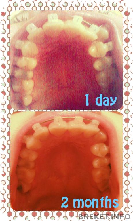 . Мне сменили дугу на более толстую, сняли пружинку и приклеили брекет на коронку. Прихожу домой, а он ррраз и отклеился
