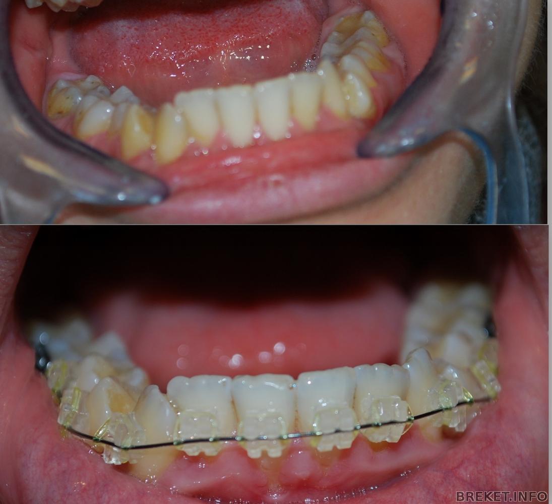 Можно было и не писать ничего, ноооо есть пару моментов, которые меня волнуют. Пересмотрела очень много фотографий, но ни у кого (из просмотренного, по крайней мере) не нашла таких печальных зубов на НЧ, как у меня…В большинстве случаев зубки стоят как бы в шахматном порядке и за пару месяцев хорошенько ровняются)) У меня слева 4ый, а справа 3ий и 4ый просто лежат на боку. И все б ниче, но места, куда им ровняться не вижу. Я не стоматолог конечно, но на НЧ места реально нет. Восьмерок у меня еще нет и места им тоже совершенно не предвидится… Напрашивается вопрос: почему мне не удалили хоть какие-то зубы на НЧ, чтоб освободить место? Не то чтобы я мечтала повырывать себе зубы, но будет вообще прикол, если я через месяц пойду на прием и моего врача осенит идея удалить что-то) это что ж будет выходить, что месяц я зря отношу БС на НЧ? Не понятно(