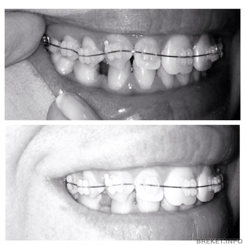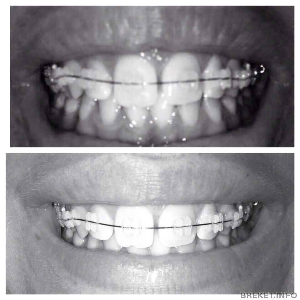 А вот как выпрямляются зубки за месяц, правда мне кажется что не большой результат( ( верх первые дни/ низ спустя месяц с чем то)