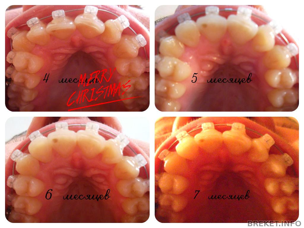 Всем привет и веселого Рождества!! Сегодня на счетчике натикало 7 месяцев с установки на обе челюсти, подвожу итоги! Клыки заняли свои места (почти), двойка все разворачивается-разворачивается и все никак, ждем третью дугу может это ускорит поворот, перекос на ВЧ немного лучше, на доли мм, но все же и вроде с изменениями все! Прием 9 января, надеюсь на новую дугу и комментарии врача)) Хочу скорее тяги, но мне кажется еще рано об этом думать!! На нч пока у меня моя заваленная пятерка не встанет в ряд - никаких мне тяг!