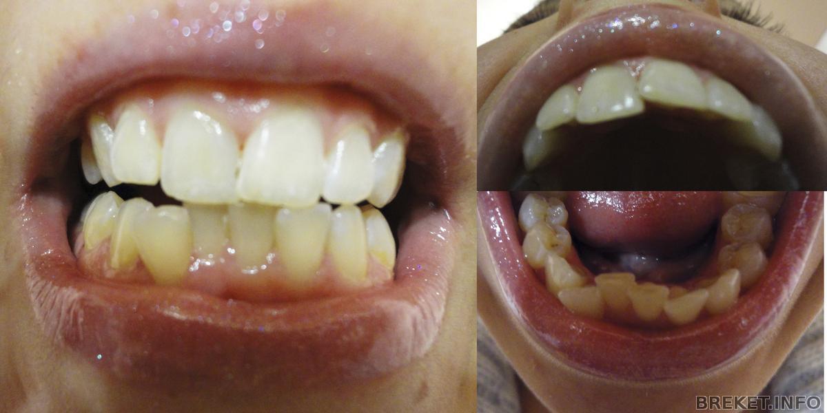 Я ставила себе 5 лет назад брекеты, носила 2 года, а они мне не помогли))) Еще и капы специальные носила 3 мес. Была в шоке, очень расстроена. Так долго мучилась и все напрасно. Вчера купила себе трейнер Т4А. Хочу попробовать их действие. Одевала трейнер первый раз ночью, но выдержала приблизительно 1 час и сразу сняла, боль была просто невыносимая. Через время, утром снова одела и так периодически снимаю и одеваю. В инструкции написано одевать на всю ночь и днем можно на 1-2 часа. Может через месяц я и смогу так, но сейчас это просто невыносимо. Прилагаю фото моих зубов в данный момент. Через 3 мес. лечения трейнером, я снова выложу фото в тех же ракурсах, чтобы посмотреть результат изменения. Хоть бы помогло!!!!