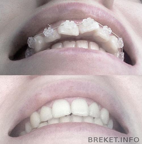 Более 2-х последних месяцев мне не прописывали лигатуры, тяги, проволоки и дуги. просто носила приклеенные брекеты на клыках (все остальные сапфиры давно сняли/отпали) и кольца (те самые, которые портили мою сексуальную жизнь) на дальних зубах. Короче, можно сказать, что зубы последние 2 месяца не были закрепленными и ничего никуда не поехало (пока?).