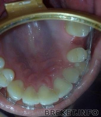 Единичка ровнее стала, очень хорошо видно))) У меня после первой смены дуги (и пока единственной) зубы начали болеть буквально через 5 минут после ее закрепления. И болели гараздо больше, чем после установки.