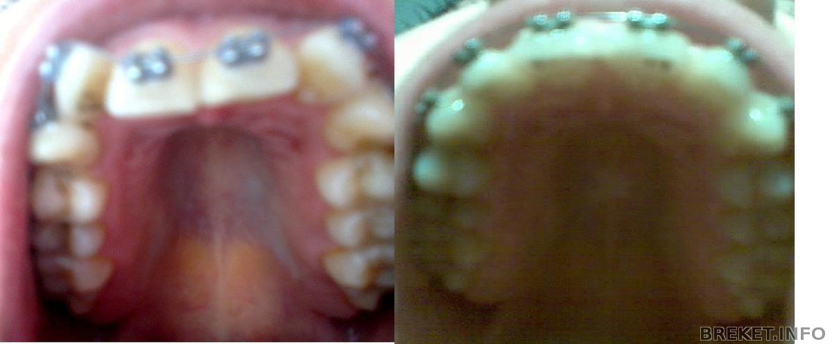 но вскоре и она начала проявлять сдвиги. Два раза у меня отклеивались брекеты. Но, каюсь, по моей вине. Захотелось тортик съесть, а в нем оказались орешки. Но это меня ни чему не научило и вскоре снова отклеялся брекет. С тех пор стараюсь сдерживать себя к такой еде. Мне уже сменили тонкие дуги на более толстые, и ВЧ и НЧ уже имеют подобие красивой улыбки и я начинаю задумываться о снятии этой прелести. Конешно я понимаю, что до этого еще не скоро дойдет, так как БС ношу только 9 месяцев, 10-й пошел. Но помечтать то можно
