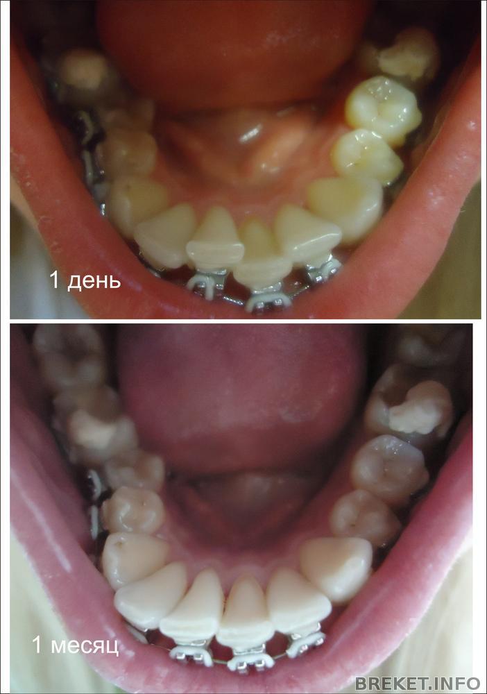 Ну вот и прошел 1 месяц. Не сказала бы, что быстро, очень ждала приема. Зубы ещё до коррекции за дня 4 начали жутко болеть, то один, то другой. Когда чистила было ощущение, что чищу по оголённым нервам. Начали двигаться)) Сегодня была на коррекции, заменили дуги на более толстые, вроде круглые 0,12. И отправили гулять 6 недель) Сказала раньше не приходить)) Зубы по прежнему кривые. Но все же результаты небольшие есть)