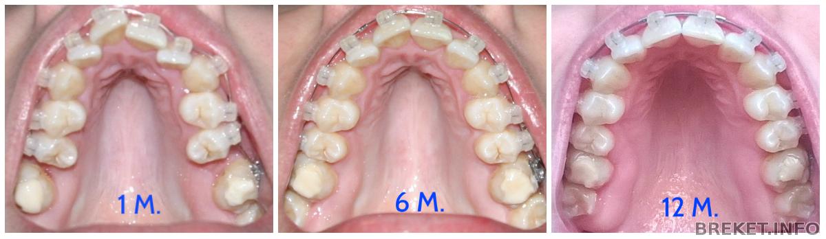 - на НЧ на шестерках стоят металлические коронки, к которым припаяны замки, а после окончания лечения их заменят на керамические.