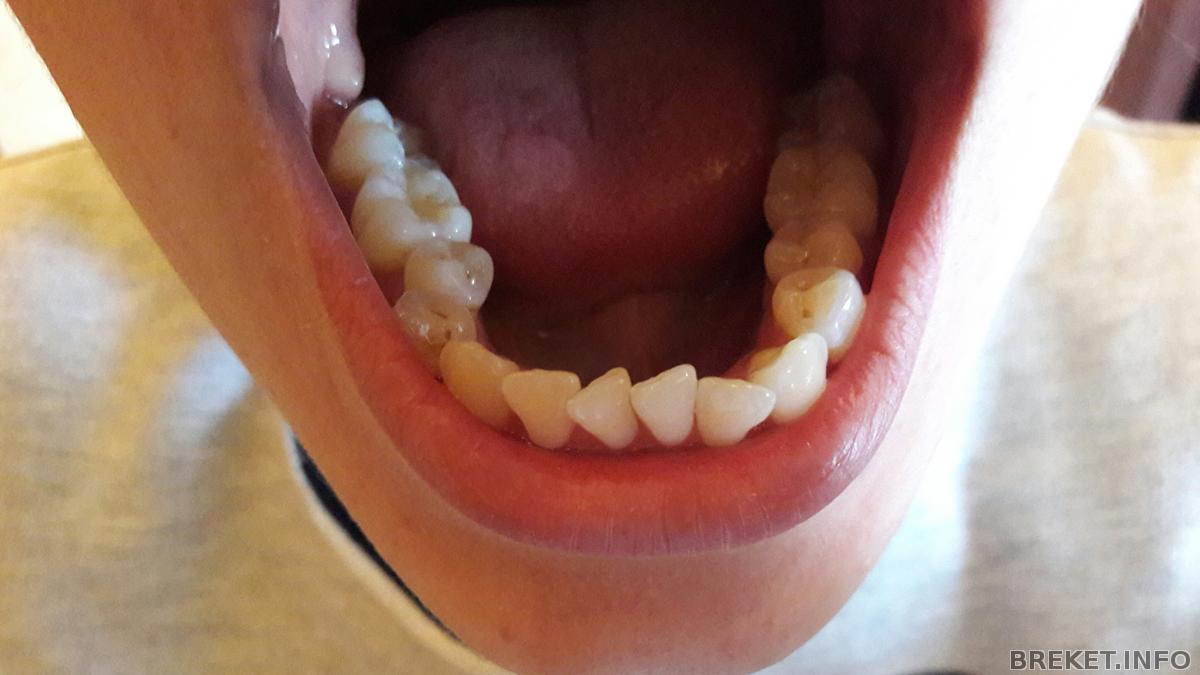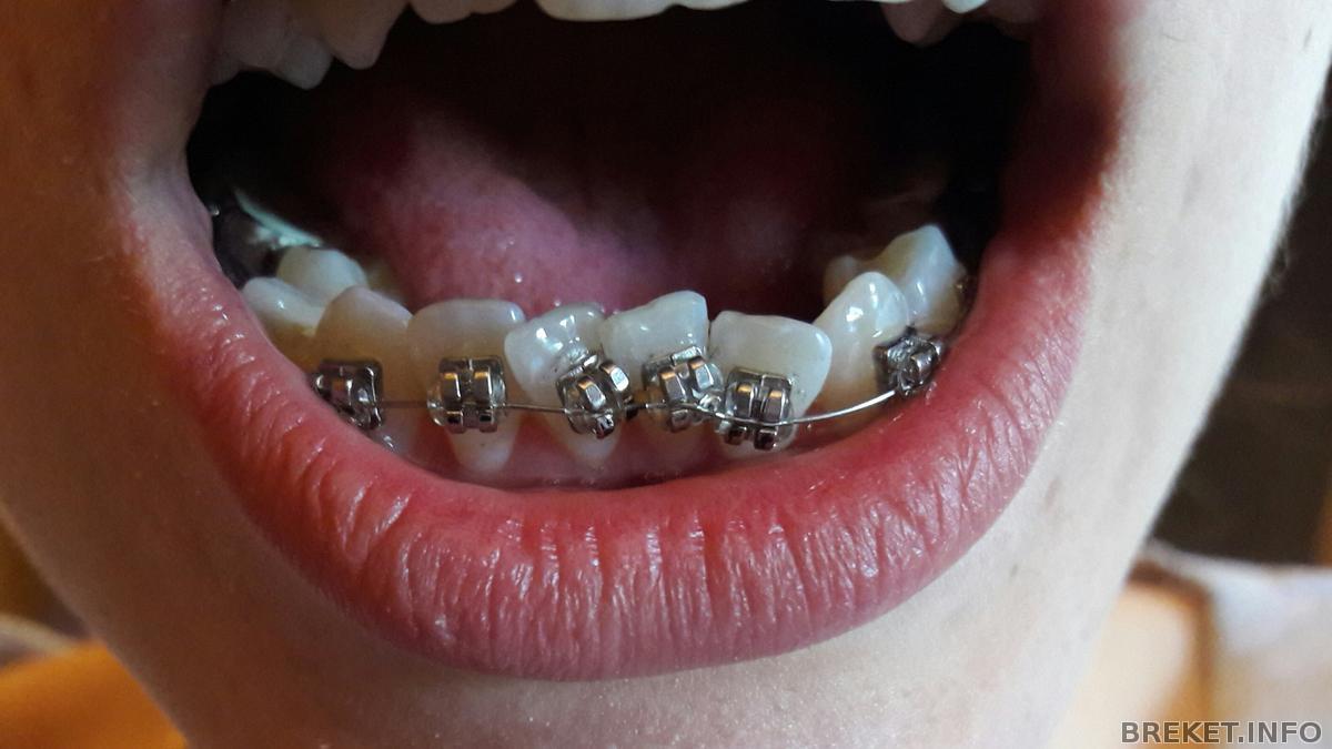 . Нижняя оказалась более чувствительной. Теперь мой передний забор кажется еще более кривым, чем был до этого. Но я очень довольна, что уже пошла работа с нижней. На два брекета на резцах лигатуры одеты не полностью, теперь придется часто ездить на бесплатные приемы, чтобы проверять можно ли их натянуть. На пятерку, которая стоит боком, брекет не одели, ее подвязали к дуге. Не знаю на сколько это правильно и верно, но доверяю врачу. Дугу поставили самую тонкую, вроде номер 12.