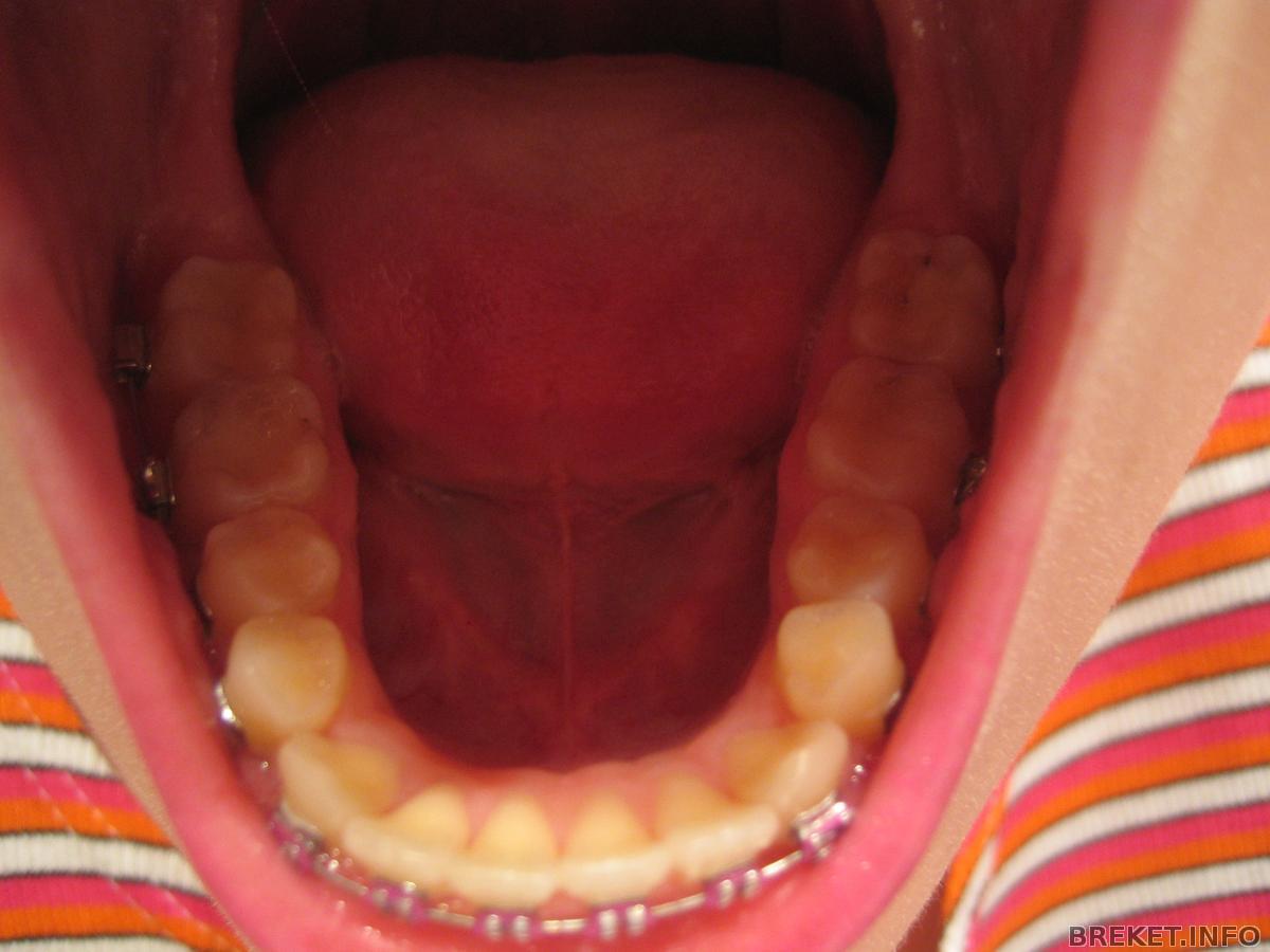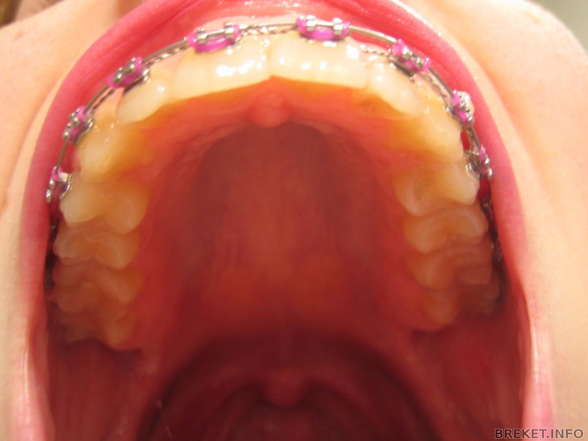 На приеме мне переклеили 2 брекета на НЧ, а еще доклеили брекет на 7-ку на ВЧ, потому что между 6-кой и 7-кой внезапно образовалась щель. А еще накрутили цепочки на передние зубы на ВЧ. Чтобы стянуть их.