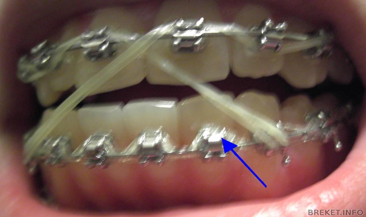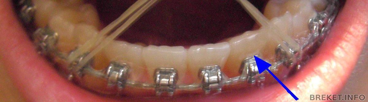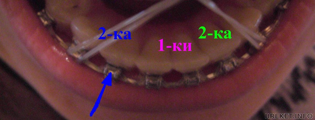 У меня не хочет вставать в ряд левая двойка на НЧ. Она как бы немного утоплена во внутрь зубного ряда. И мне её уже сепарировали и даже проволочкой брекет прикручивали к дуге. Но к сегоднешнему приёму она не изменила своего положения.