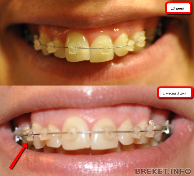 На вредный брекет на клыке, у которого отвалился замочек орт организовал лигатурку из проволочки (на фото ниже я указала стрелочкой). Меня устраивает такой вариант ![]()