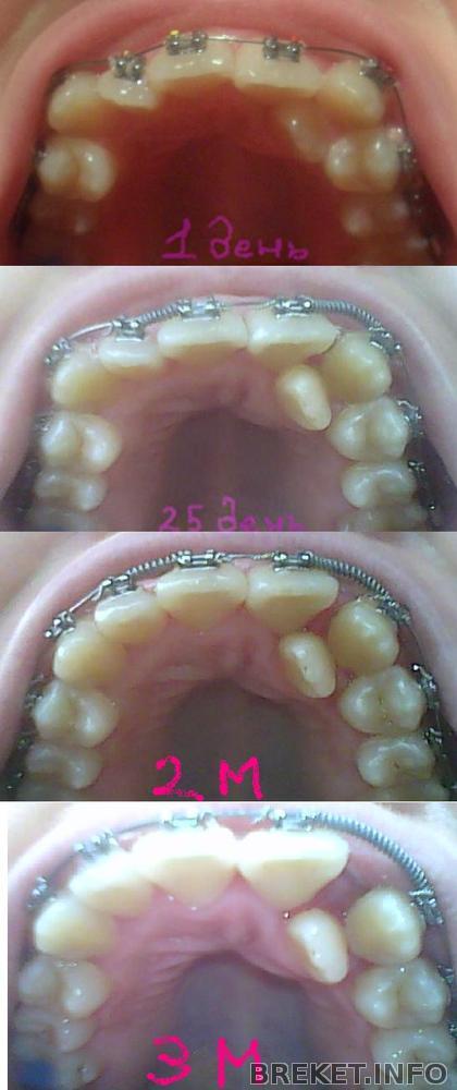 Сегодня сходила на очередной приём.На вч поменяли дугу ,а на Нч поставили брекеты.Предложили цветные лигатурки,хотела отказаться,сказала что на Вч поставлю,как только выровняются зубы.и двойка встанет в ряд,но мне сказали что их я уже на ВЧ не поношу(будут только металлические лигатурки(поэтому согласилась на НЧ поставить цветные).НЧ уже болит.И к стати на НЧ поставили брекеты только до 6-к,т.к у меня молочная пятёрка,и нет зачатка,что бы её не расшатывать,с правой стороны брекеты только до 5-ки и нету замочков даже (щёчных труб)только брекеты(жалко,как же прикус исправлять будут,она немного короче и шире чем постоянные пятёрки,будут щели наверное и не идеальное смыкание .А так хотелось красоту (И приём у меня следующий не через месяц,а через 2,врач уходит в отпуск.