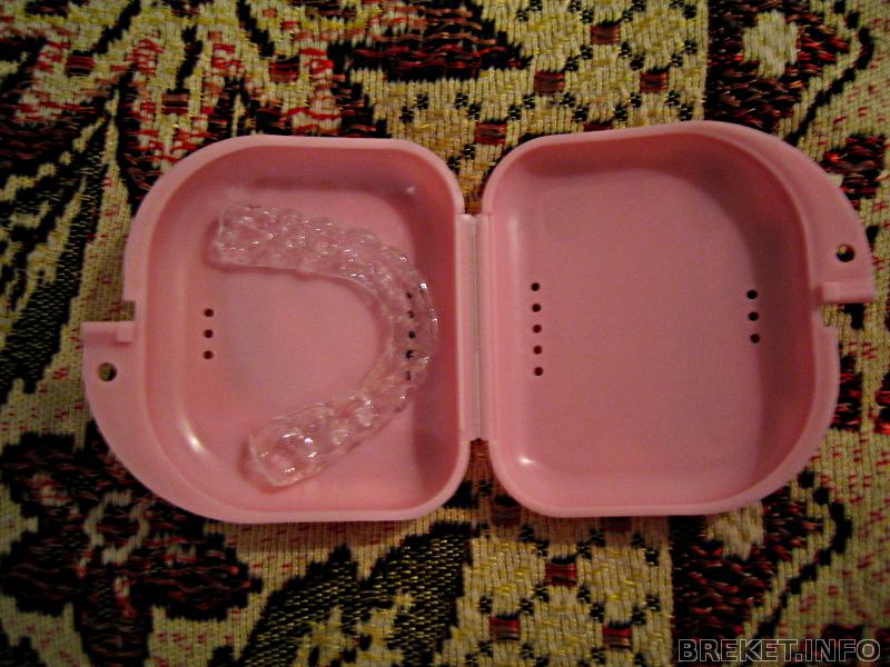 Наклеили ретейнер и сделали капу для ношения на ночь. Для капы выдали футляр - я выбрала розовый