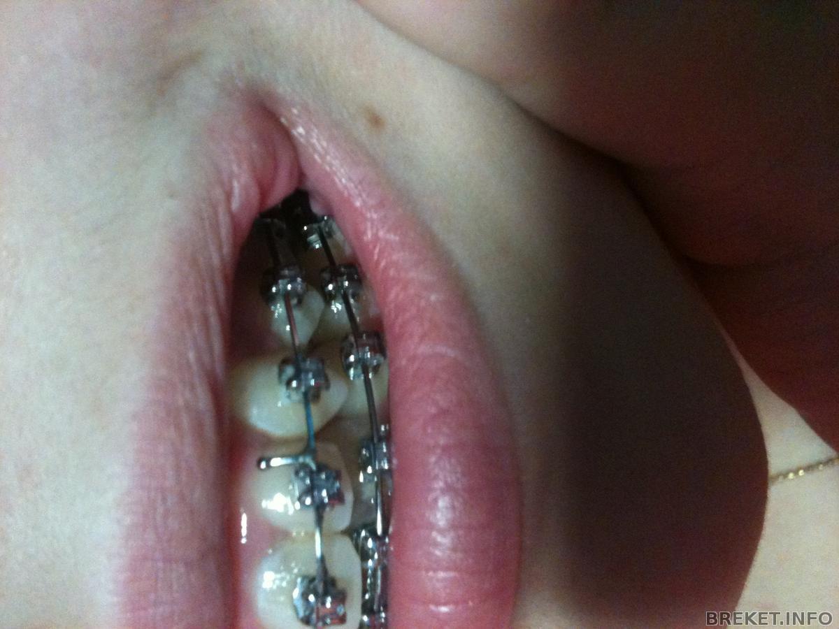есть небольшая дырочка на ВЧ между 2 и 3. Выпал брекет с 7. Теперь дуга висит и ранит щеку( Затянут (я надеюсь). На НЧ не меняют дугу уже месяцев 5 - 6. Наверное, закрепляют результат. Еще выпал брекет с НЧ, но он плотно держится благодаря железной лигатуре (ну или как это) + дуга. Прикус уже , вроде бы, нормальный. Надеюсь, что к апрелю брекеты снимут)