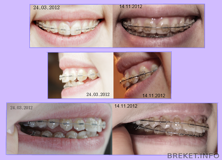 Шесть с половиной месяцев ровняли мои зубы брекеты, потом им на помощь пришли тяги, да еще и минус три зуба мудрости...и имею то, что имею..