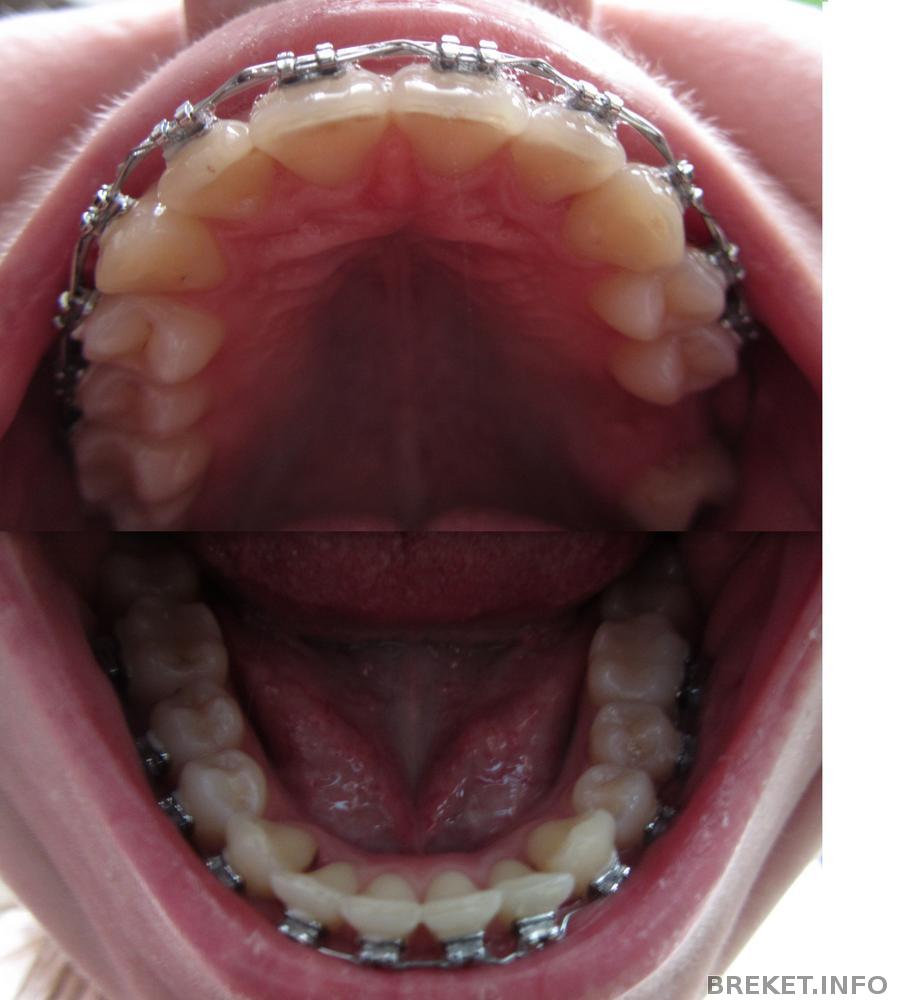 А вот снизу прошло 4,5 месяца и до сих пор не все выравнялось. Сегодня был прием, снизу дугу изогнули, а сверху поменяли дугу,чтобы подключить в систему моего отдельно стоящего воина, который целый месяц был предоставлен сам себе после установки импланта