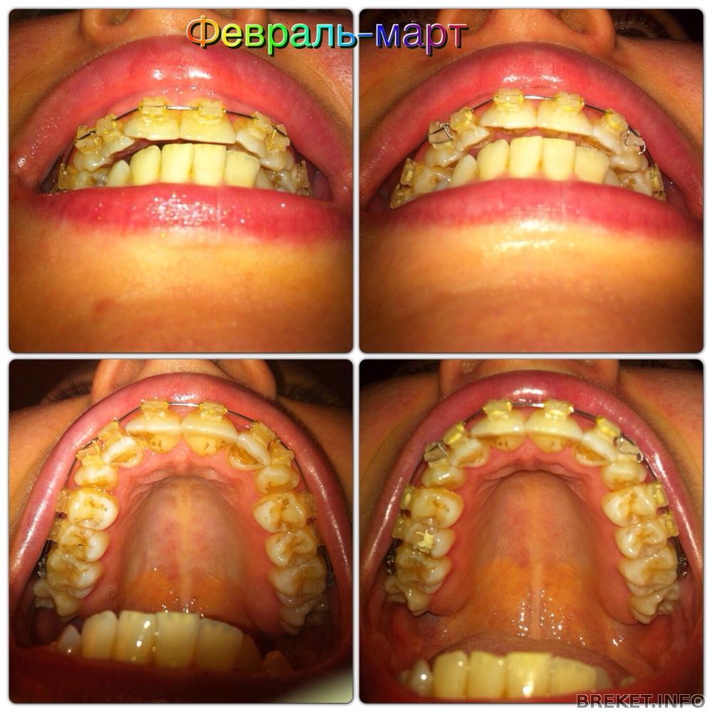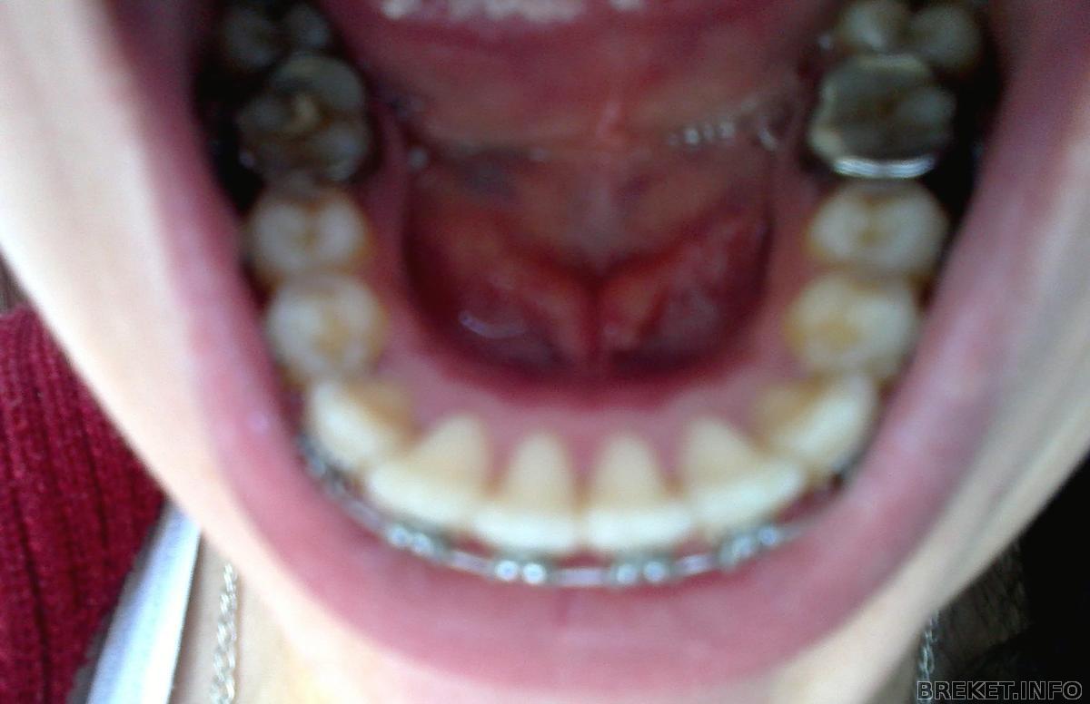 Но у меня проблема несколько в другом, из-за того, что в 12 лет была удалена нижняя левая шестерка, зубки снизу поехали, и очень большой оказалась нагрузка на верхний левый клык. Результат - оголенная шейка зуба... В общем, орт мне сказала, что если бы в свои 29 не пришла ставить брекеты, рано зубы бы потеряла...
