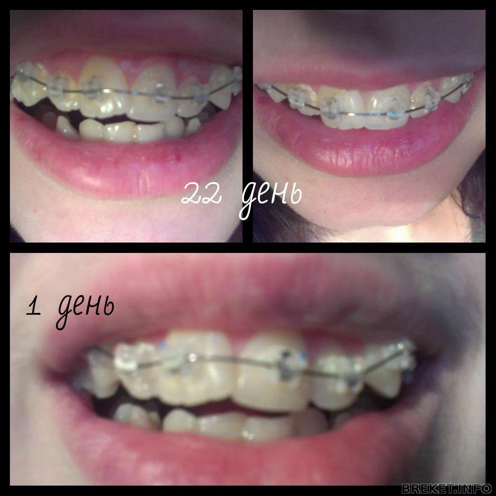 Ходила к орту через 3 недели ношения, подрезали дугу и всё-) Спросила про единицу, чего она поехала не туда, орт ответила , что пока квадратную дугу не оденем, то можно вообще не смотреть, клык опускается это видно (лично я ничего не вижу), и поэтому единица будет ползти в низ , а двойка вверх, это ж понятно (ну конечно "ясно, как божий день" ).