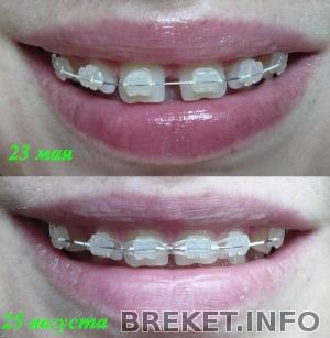 19 июля мне поставили слабенький чейн на четыре передних зуба, чтобы они немножко отдохнули от воздействия.