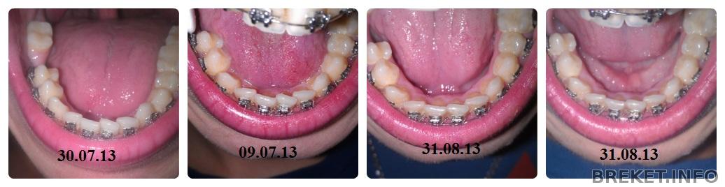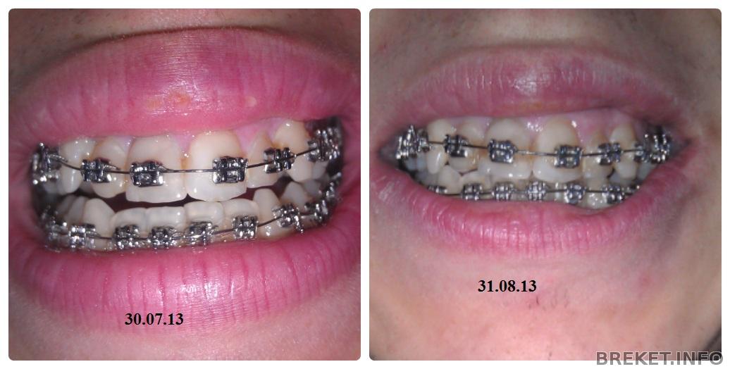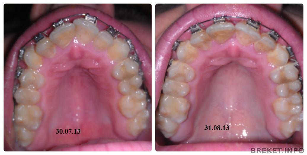 Всем привет!)Моим брекетам уже 1 месяц 21 день,не так много,но уже есть большие изменения, во первых наконец появились мои двойки,до этого они были за единицами ну и единички потихоньку уходят назад,что тоже очень хорошо.