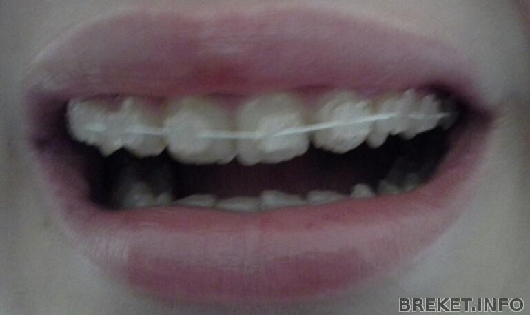 Сегодня была у ортодонта, она пока отменила тяги и вместо них прицепила проволоку и эластичную цепочку на несколько зубов, чтобы сдвинуть передние зубы влево за счет образовавшейся щели между единичкой и двойкой. Если бы не появилась эта щель, центр можно было бы выровнять только с помощью удаления каких-нибудь зубов. Не знаю, правда, достаточно ли этой щели, чтобы центр встал на место, но думаю, уже будет практически незаметно!