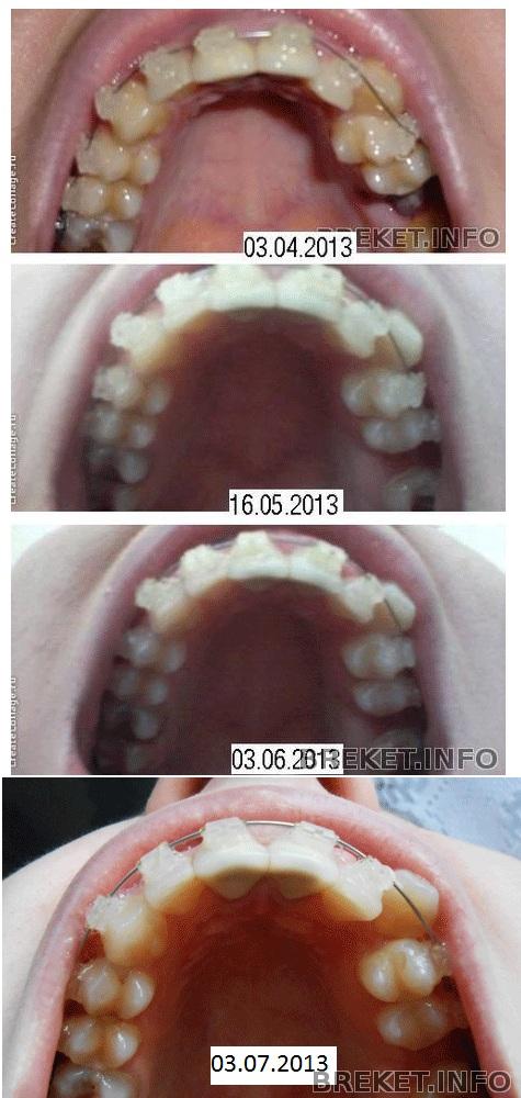 Движение зубов. Зубки движутся очень медленно, моему клыку вставать все еще некуда. Хотя места от удаленной 6ки полно! Хочется, чтобы клык быстрее подключили, но понимаю сама, что некуда ему втиснуться! Вот сравнительные фото:
