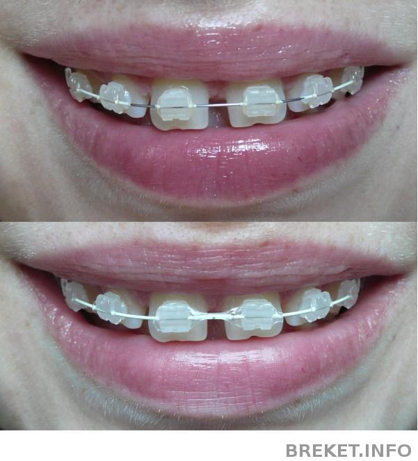 Сегодня была у орта первый раз после установки. Он даже удивился как бысто у меня всё выравнивается и поставил на ВЧ квадратную дугу.