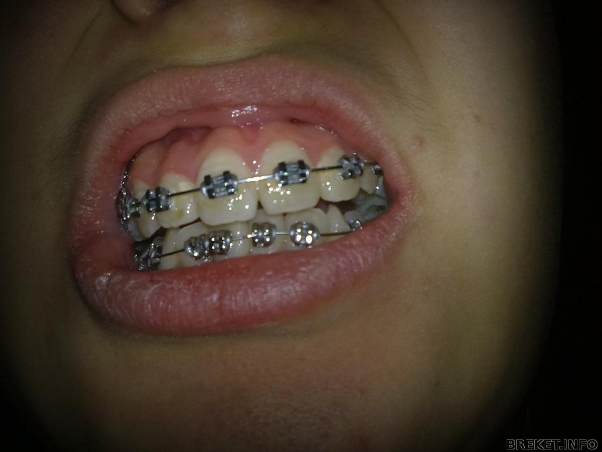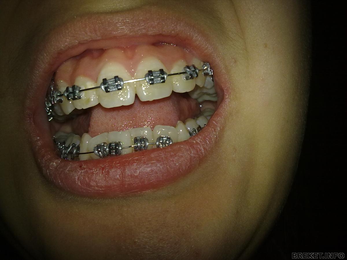 НЧ поставили 5 дней назад, соответственно, дуга тонюсенькая. В том месте, где удален зуб, дуга сначала гнулась (я ее поправляла), а сегодня и вовсе 2 раза вылезла во время еды, еле воткнула обратно - упругая, зараза. Кушала достаточно не жесткое яблоко, порезанное на куски.