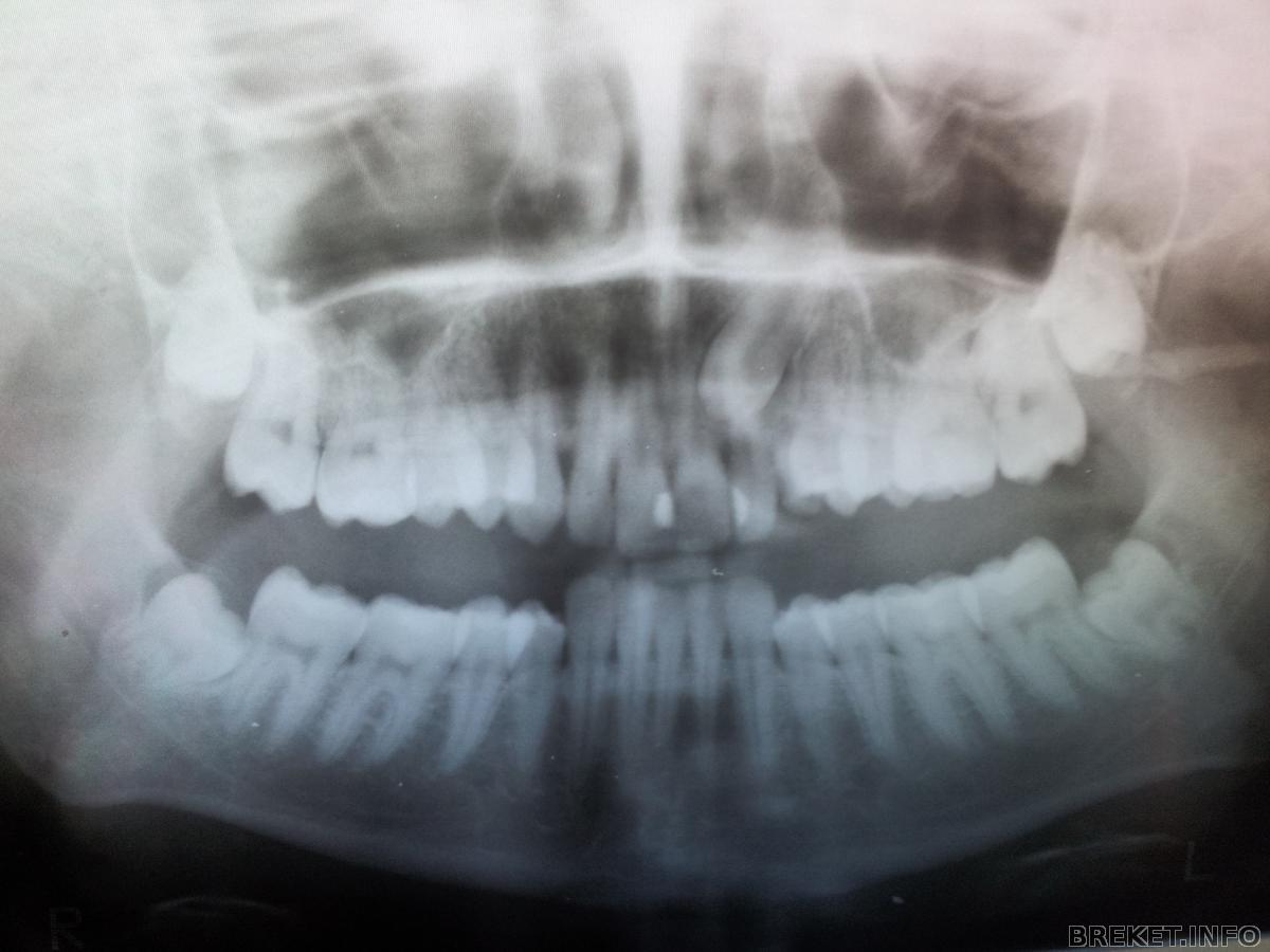 А там, где на фото черная маленькая закарючка, это молочный клык, который со мной уже 20 лет)) Ясное дело, что за это время молочный зуб изрядно попортился)