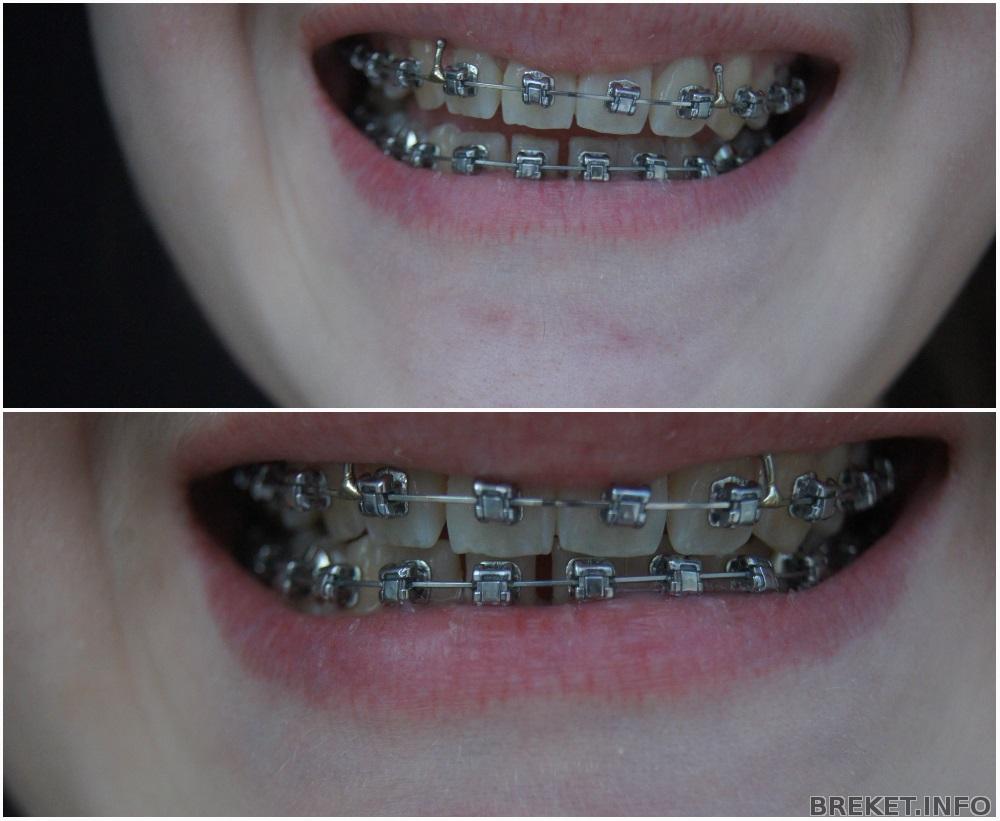 Сегодня в 11.00 установили мне БС на ВЧ, самое неприятное это расширитель и сухость во рту. Установка заняла примерно час со всеми рассказами. Прошло всего два часа, я много не разговаривала, но верхняя губа уже печет от натертостей. Фото вечером покажу. Пока ничего не тянет и не ноет, но я после пластинки, и орт сказала что не знакомых болей быть не должно. Оставила верхнюю пластинку еще на две недели, носить вместе с брекетами, т.к. дуга тоненькая, чтоб ничего не уехало обратно. На НЧ продолжаю носить пластинку, зубы очень ноют. В общем смотрятся неплохо, думала будет страшнее
