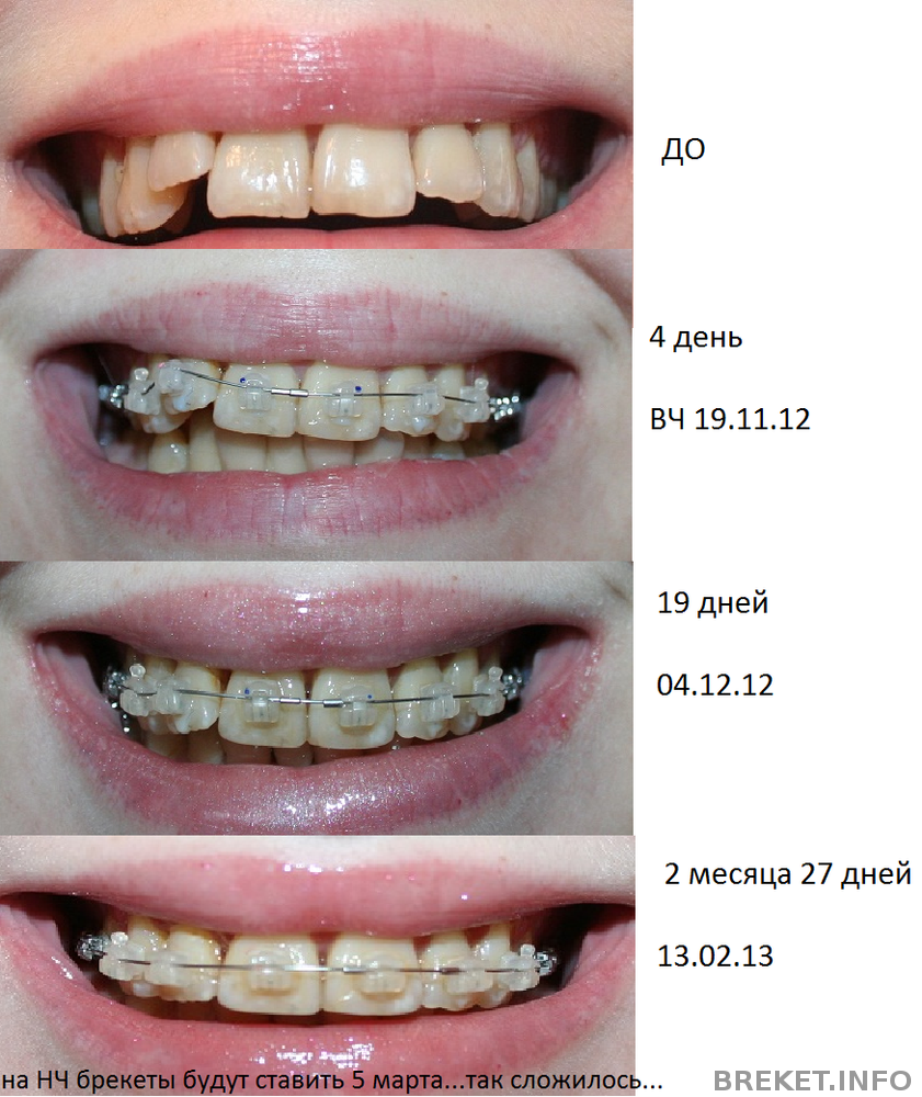 2.подбодрить тех, кто только начал и ждет изменений) У меня пока брекеты стоят на ВЧ, движуха есть!.НЧ будем ставить только 5 марта, так сложилось, ну вообщем долгая история.За это время слетело 2 замка, пришлось приклеивать заново,ну а так ем все, забываю, что у меня они вообще стоят, улыбаюсь во все 28 зуба