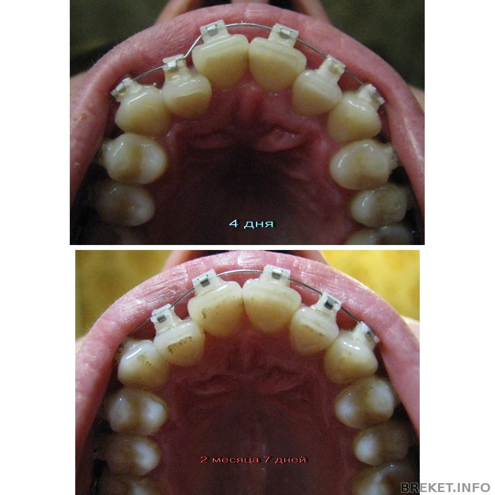 ура!моим металлюгам сегодня 2 месяца! Мы так сроднились за это время!а главное что они меня радуют результатами!челюсть заметно расширилась и поэтому щель между единицами стала больше.ортофея предупредила,что пока они будут расходиться-промежуток будет увеличиваться.ну это даже хорошо,потому как язык с трудом всю жизнь там помешался.в общем говоря радостно мне!