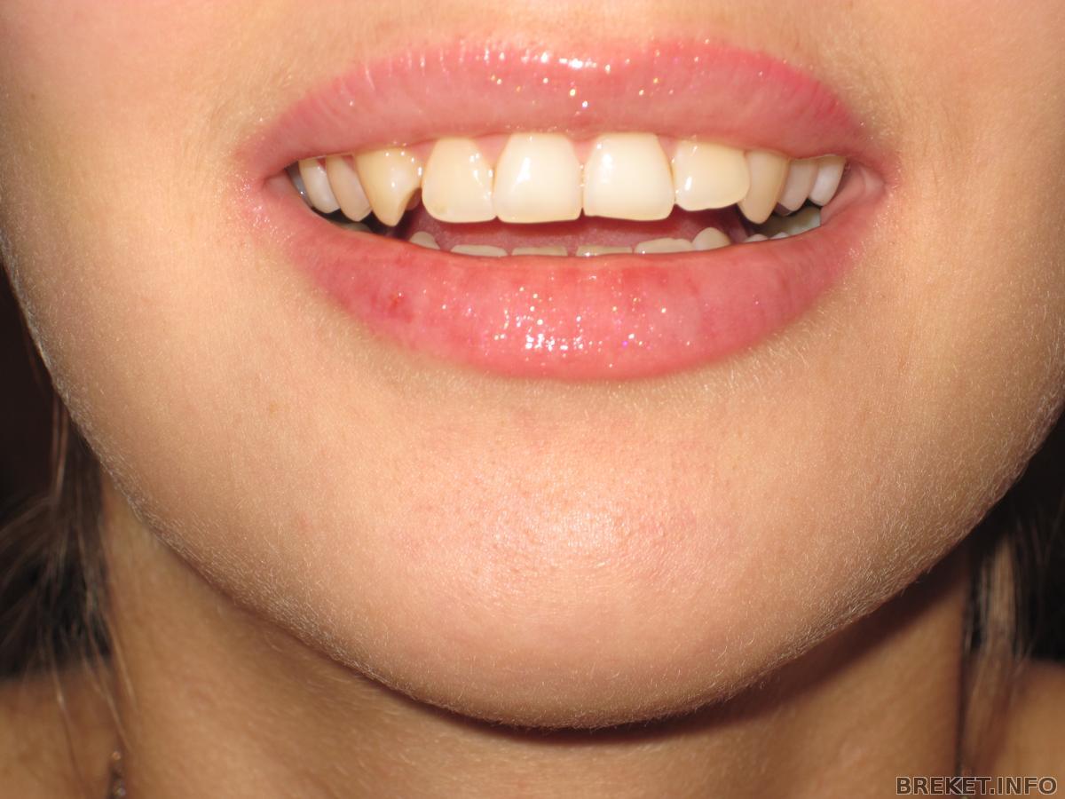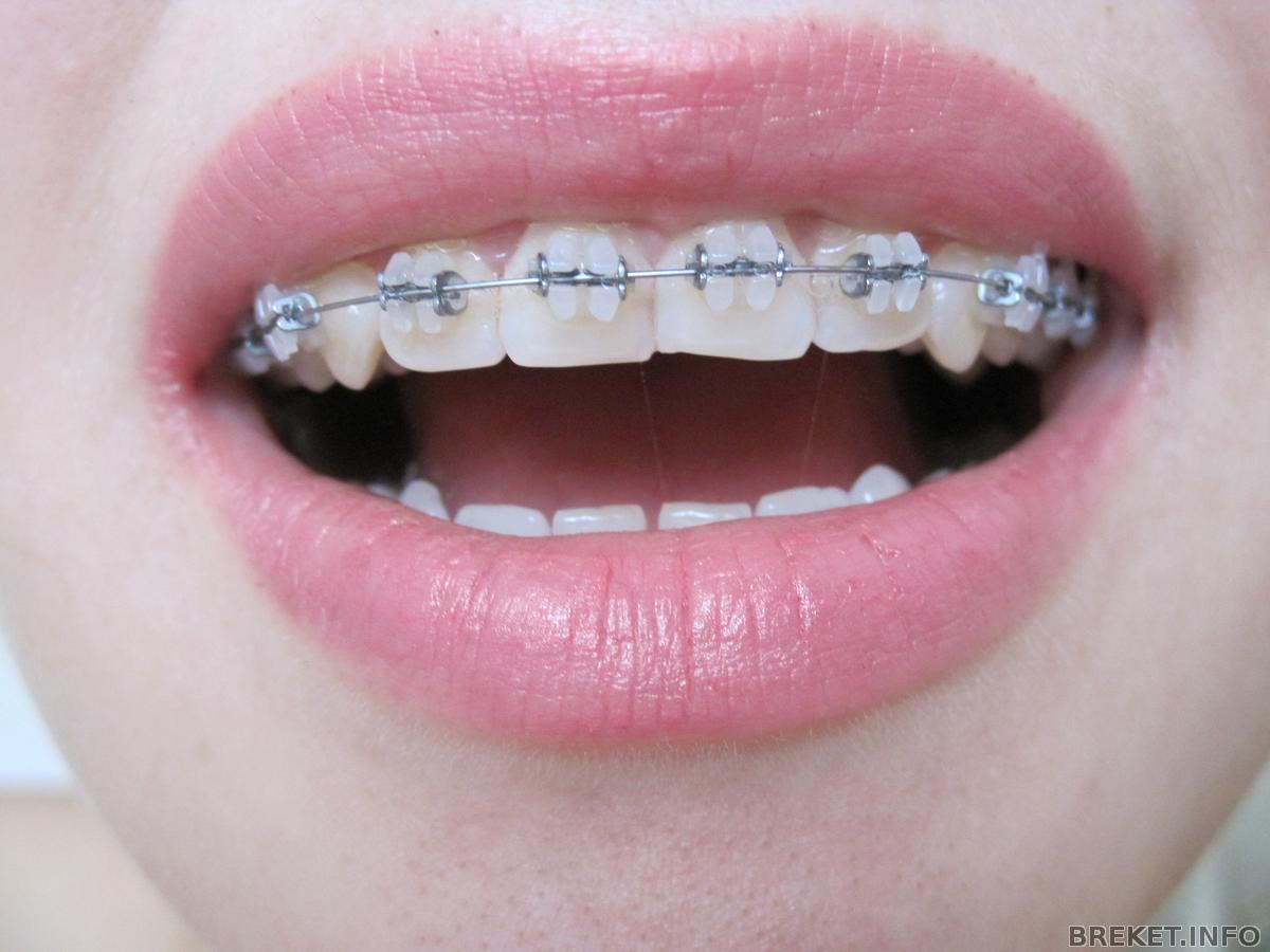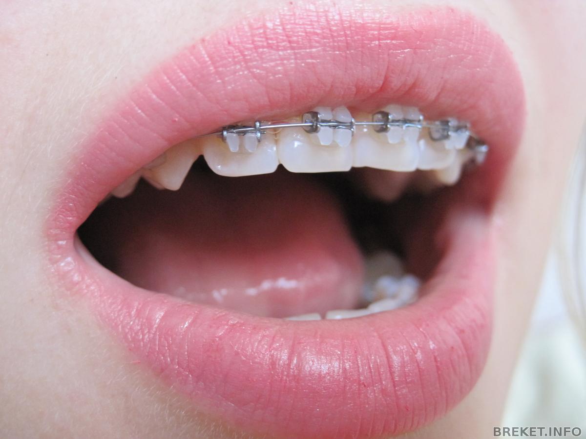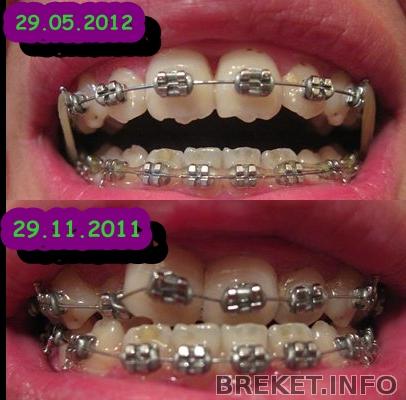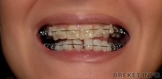 Мне вчера так и не подключили последний брекет на НЧ; орт не смогла перекинуть дугу с единички на единичку и поставила между правыми (на фото - левыми) единичкой и двойкой эластичную цепочку. На фото.