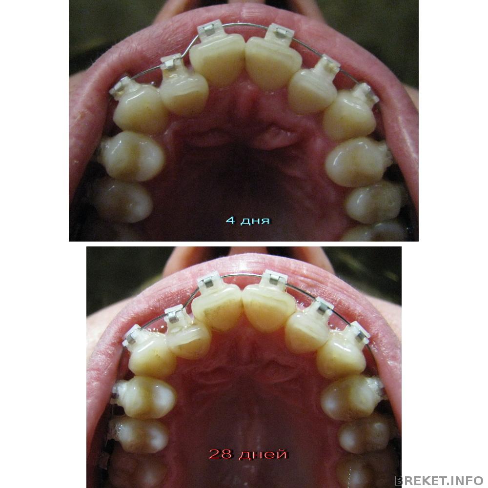 Сегодня моим брекетам 28 дней... и вдруг что то стало очень ломить зубы, и до некоторых больно дотронуться... Сделала фото, особых сподвижек не вижу... Но может болят, потому что двигаться начали?