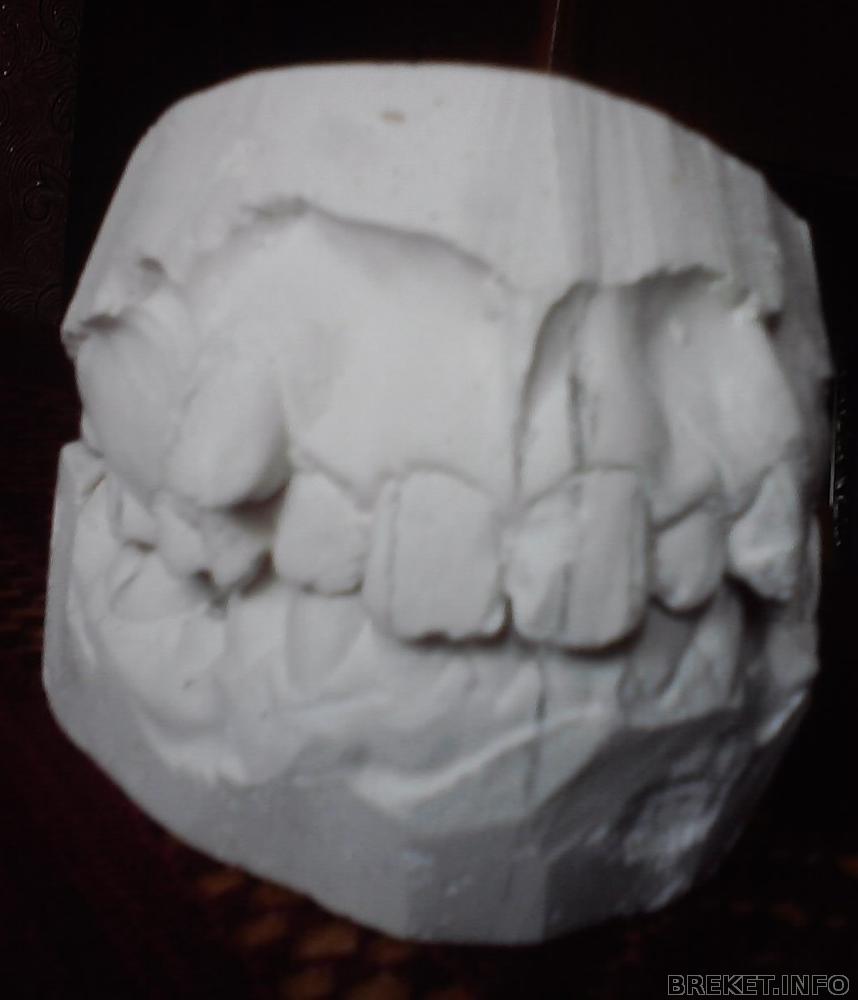 Нашла свой слепок 12летней давности. Вот такой у меня был зубик. Видимо в те времена все было проще удалить, что, собственно, мне и сделали. Так я осталась без одного клыка, а он бы мне сейчас очень пригодился.
